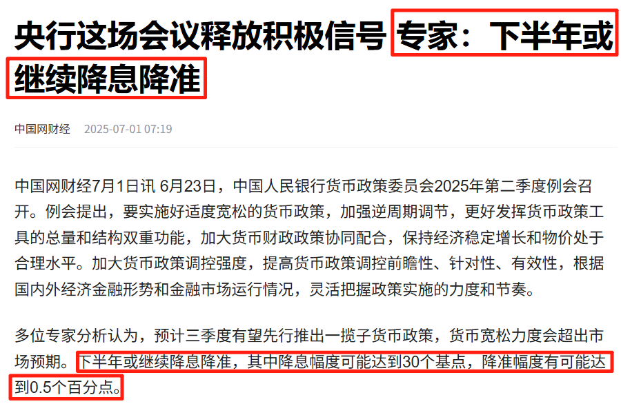 事实上,自今年6月开始,国内高层会议——如央行二季度例会、政治局会议等——已屡次提出“实施适度宽松的货币政策”,引导市场利率稳步下行。