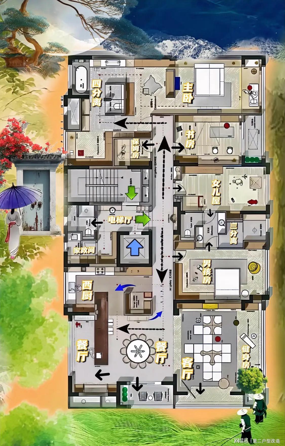 改房子有个铁律,硬布局,妙动线,398㎡看似笨拙,却是解决两娃难题的好户型!